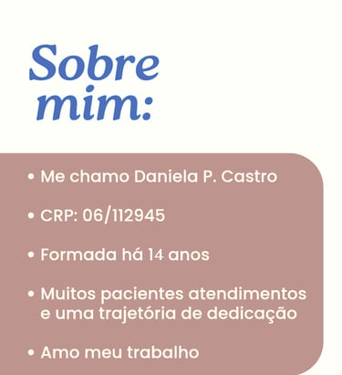 SOBRE MIM, DANIELA CASTRO PSICOLOGA SOBRE MIM, quem é Daniela castro, comportamento Alimentar, Terapia Cognitivo Comportamental, Transtornos Alimentares, Cirurgia do aparelho digestivo, Reganho de Peso, equipe multidisciplinar, redução do estomago